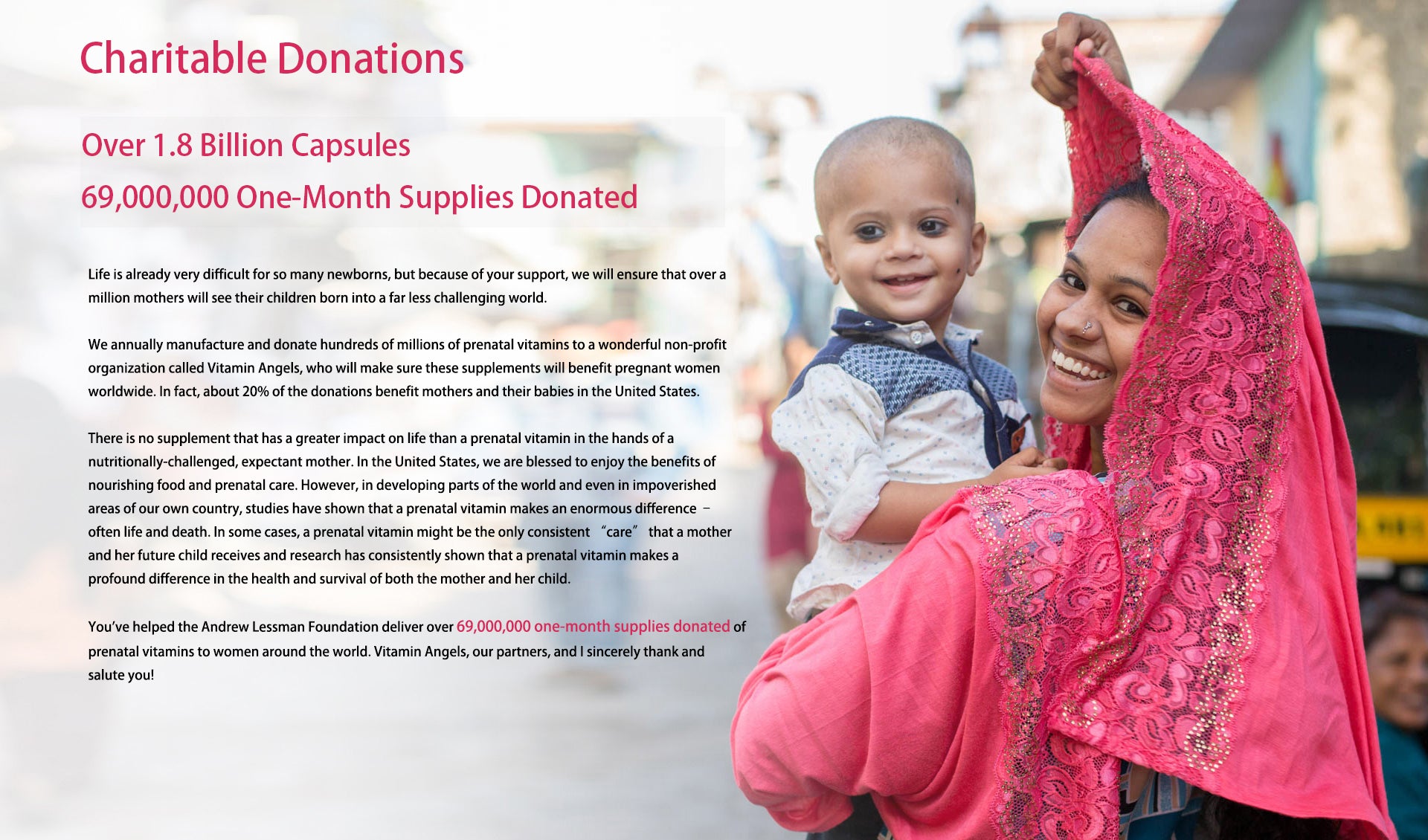 You've helped the Andrew Lessman Foundation deliver over 69,000,000 one-month supplies donated of prenatal vitamins to women around the world. Vitamin Angels, our partners, and I sincerely thank and salute you!